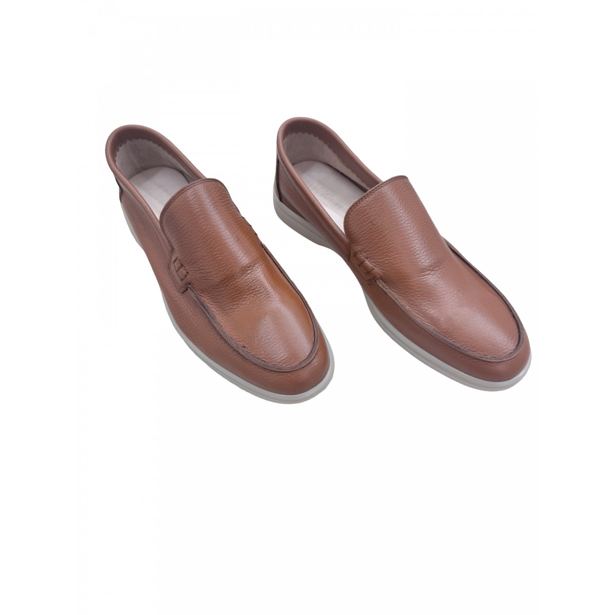 Men’s Loafer “Mare” in Hammered Tan Calf Leather with Beige Rubber Sole – Authentic Handmade in Italy Sorrento Craftsmanship