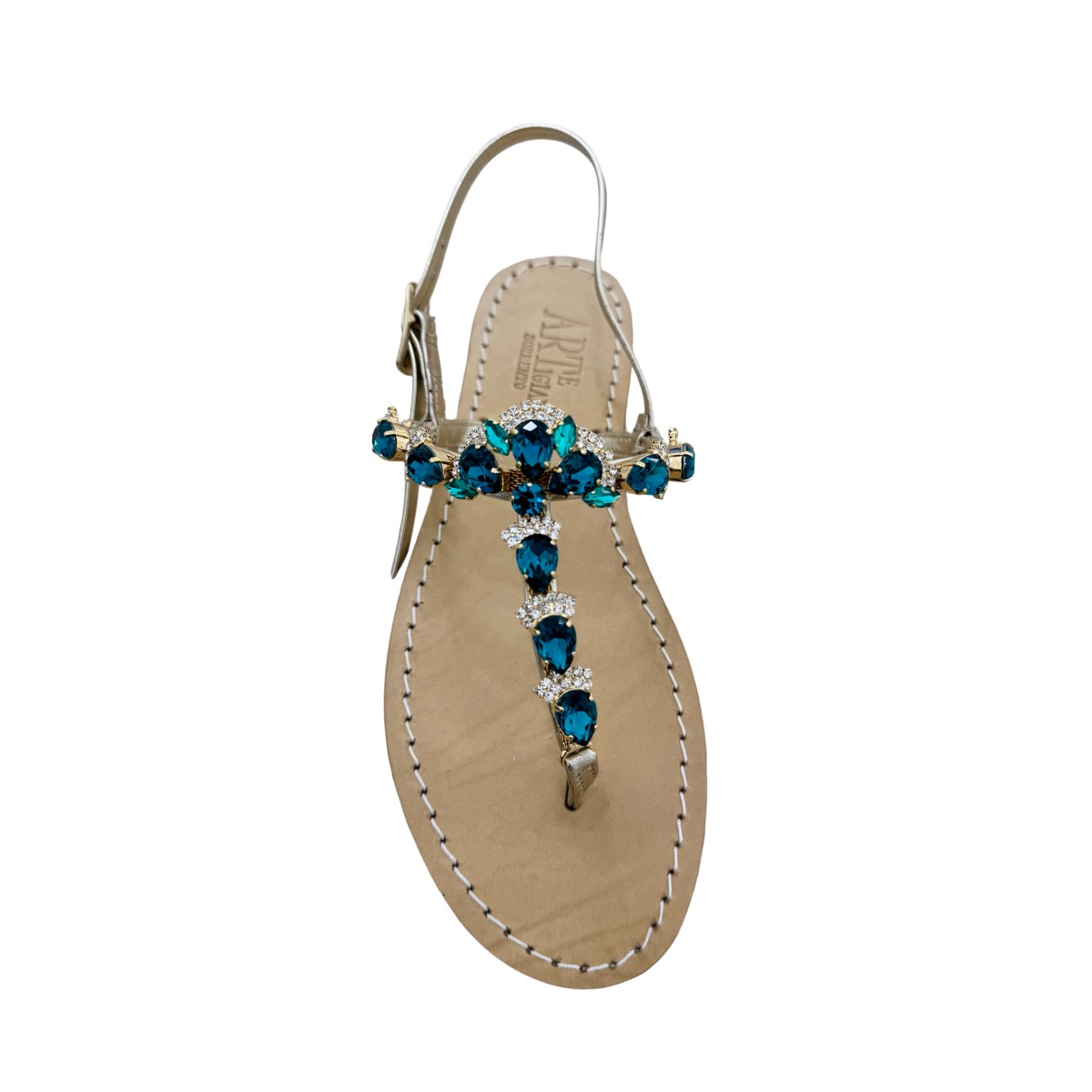 The elegance of the Flavia sandal lies in its harmonious silhouette that enhances the natural beauty of the foot. The green crystals are not just decorations, but true light points that draw attention with their magnetic depth. It is the perfect "bold chic" for those who want to stand out: stunning with neutral-toned dresses, white or black, or to create a sophisticated look when paired with floral prints and earth tones.