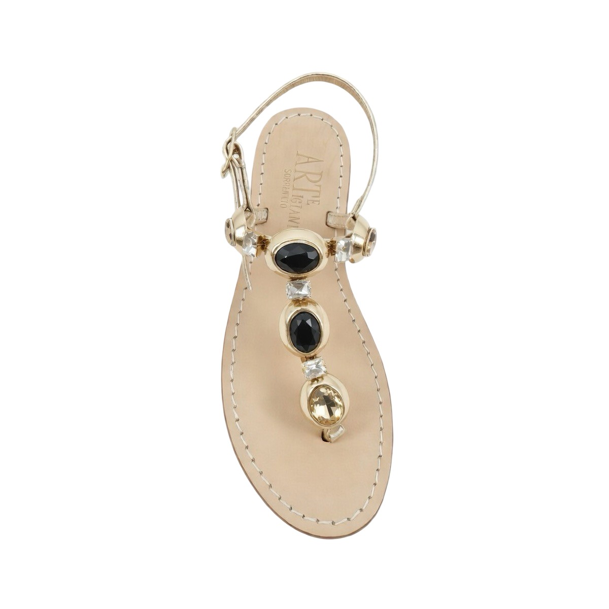 In the heart of Sorrento, our master craftsmen have reinterpreted the Debora model for the woman who loves bold details. The platinum-colored leather, with its high-quality metallic finish, wraps the foot with elegance, while the smoked black crystals, set with millimetric precision, create a play of shadows and glows reminiscent of starry nights on the Coast.