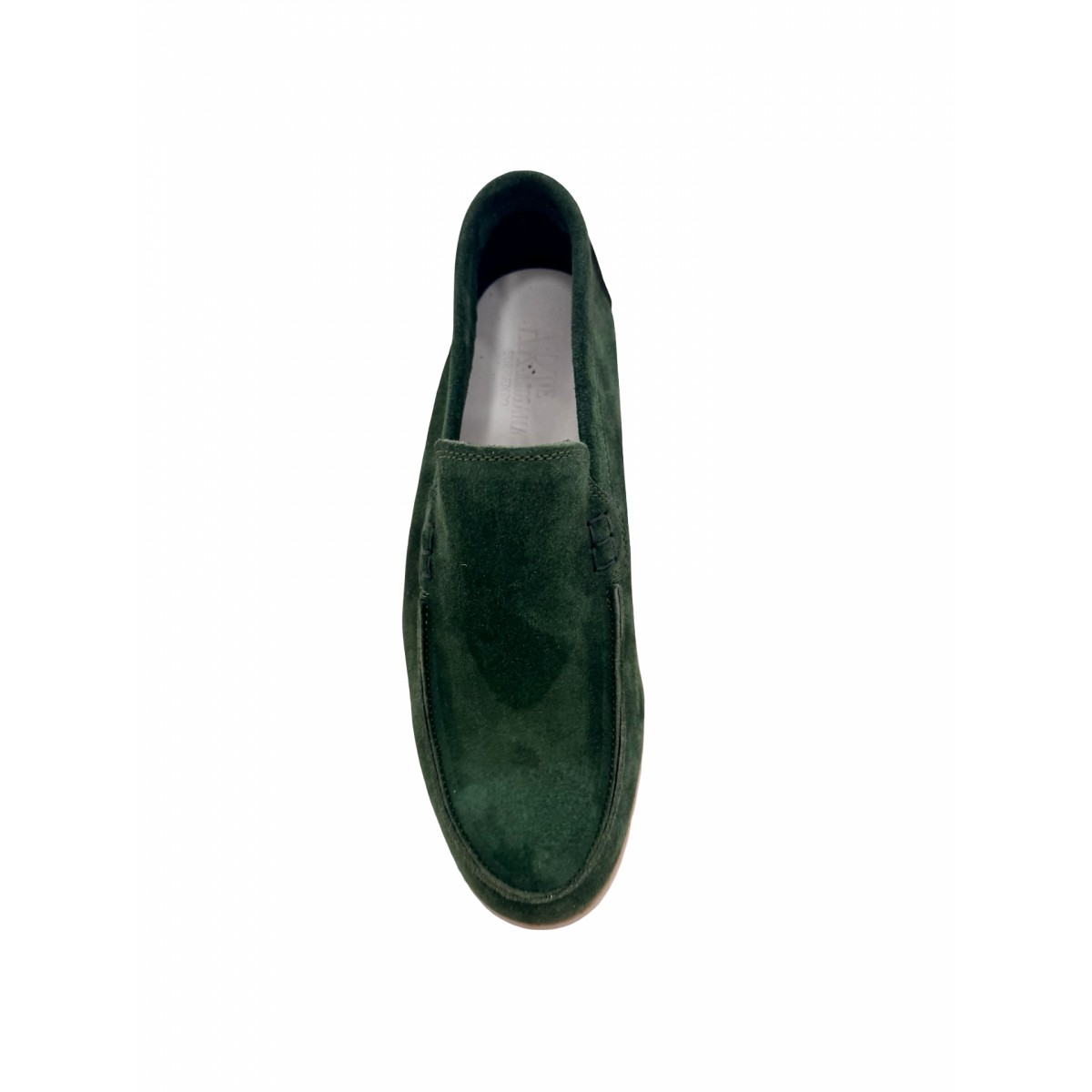 Add to cart your handmade in Italy Sorrento “Mare” forest green suede mocassin for women and experience the pleasure of a unique unlined shoe on your feet.