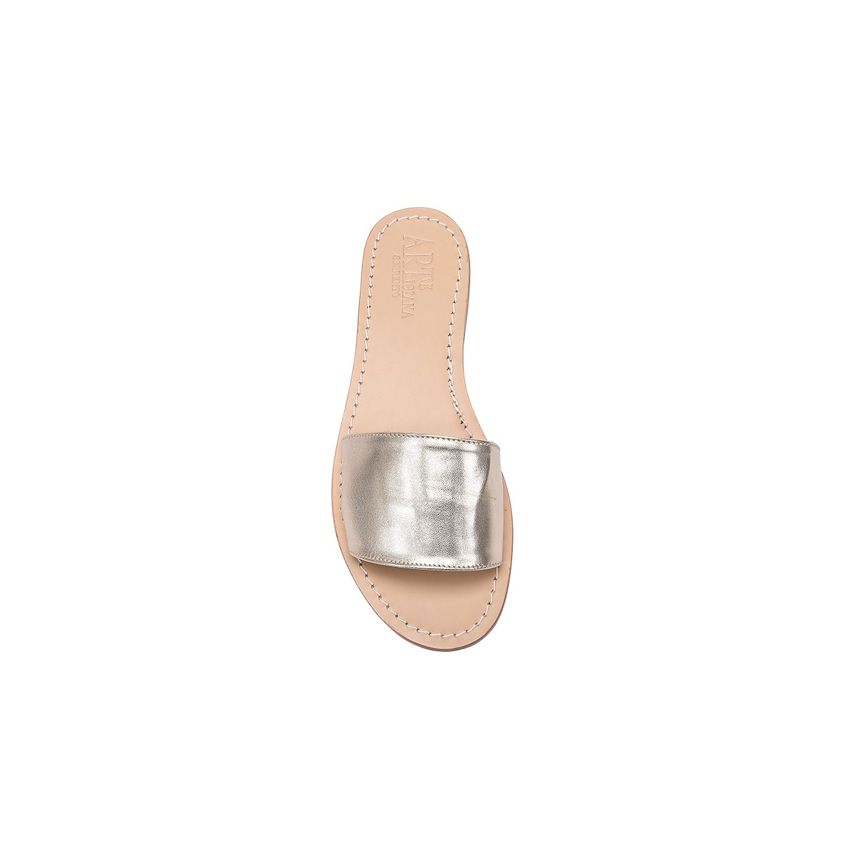 Whether you are strolling through Capri or watching the sunset in Positano, the platinum slide is your go-to footwear. It pairs seamlessly with your favorite garments: from white denim and maxi dresses to high-end silk kaftans.