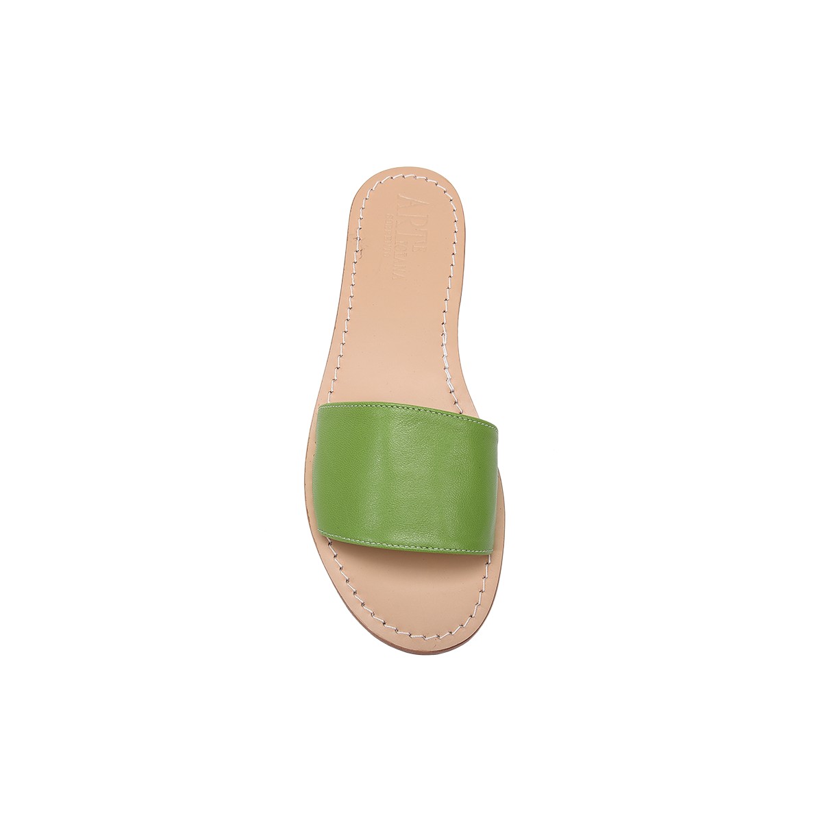 Our single band "Slipper" in this vibrant green shade captures the essence of the Coastal hanging gardens. Every pair is made by us, following the traditional secrets of our own workshops and stores in Sorrento. The wide-band fit is engineered for immediate comfort, framing the foot with a bold, sophisticated color.