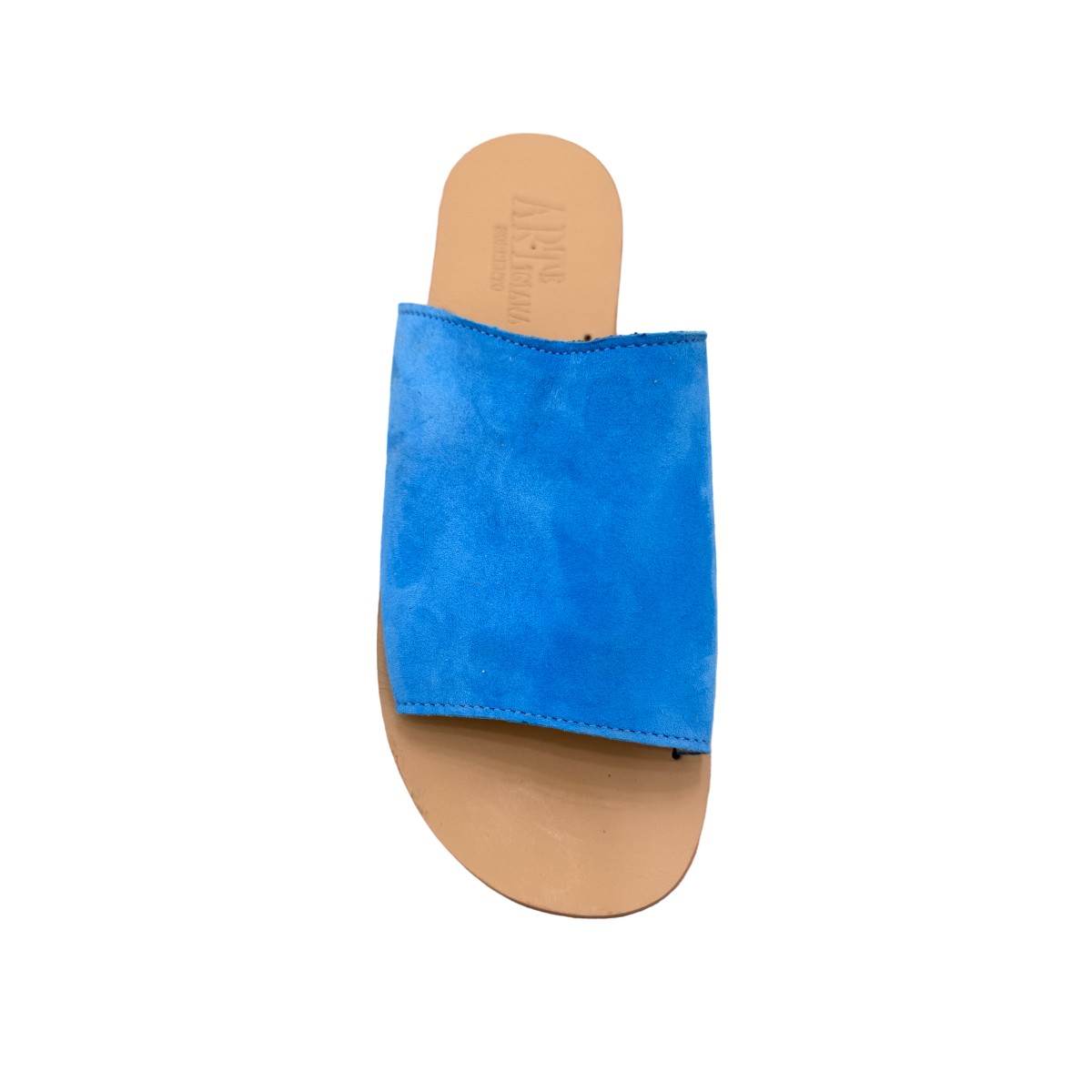 Our turquoise suede "Slipper" captures the chromatic essence of the Amalfi Coast. Every pair is made by us, reflecting the artisanal heritage of our own workshops and stores in Sorrento. The velvety texture of the suede enhances the brilliance of this aqua-blue shade, creating an accessory that celebrates the beauty of the Mediterranean.