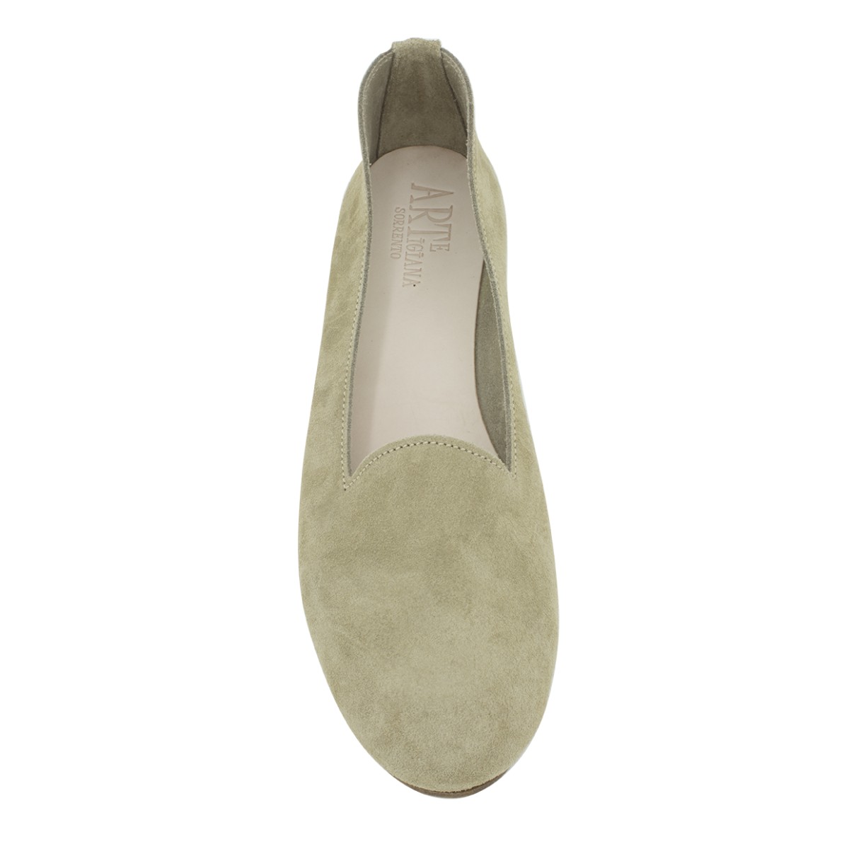 • Tomaia: 100% Pregiato vitello scamosciato "Soft Touch" (Beige).