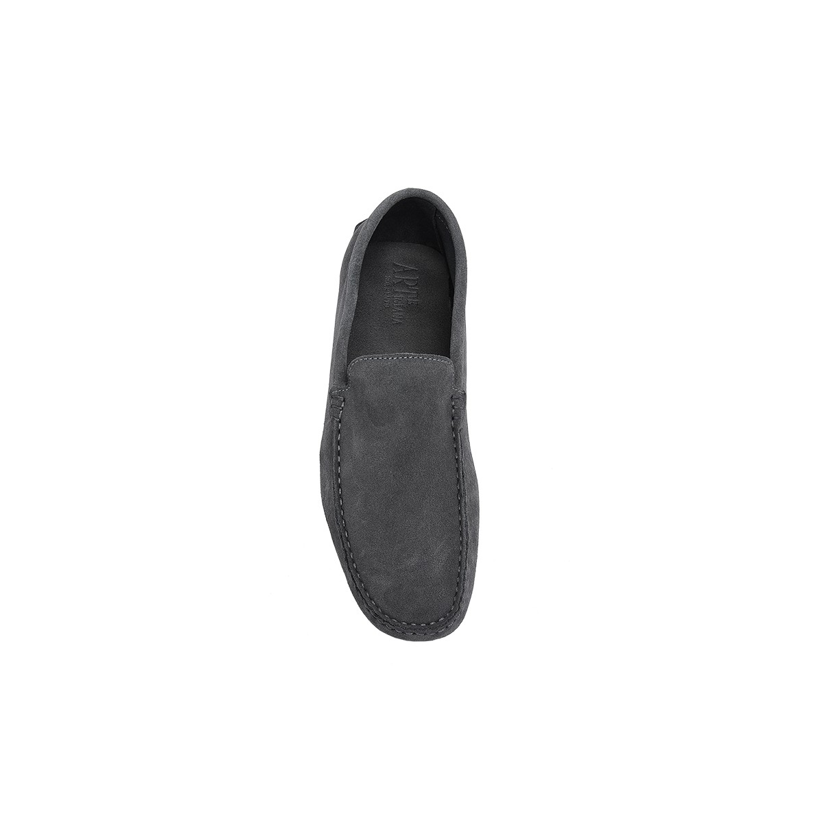 Il cuore tecnico di questa calzatura è la suola a gommini (driving sole). Ogni singolo tassello in gomma viene inserito e fissato da noi manualmente attraverso una meticolosa cucitura a mano, assicurando una durata superiore e una capacità di flessione che permette alla scarpa di essere ripiegata su se stessa. La scelta del camoscio antracite di prima qualità conferisce una texture vellutata e una resistenza cromatica perfetta per l'uomo contemporaneo.