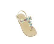 Sandali modello Sissi color platino metallizzato, realizzati in pelle di vitello con pietre Swarovski multicolore. Fondo in cuoio naturale italiano.
