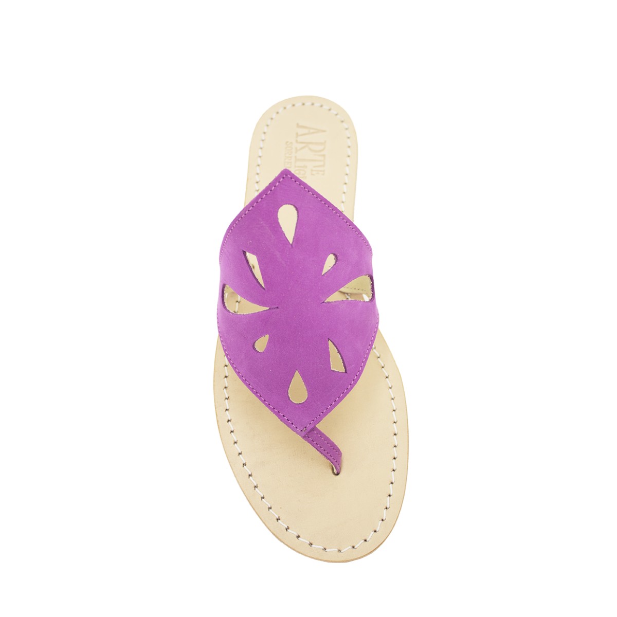 • Suola in Cuoio Naturale Italiano: Realizzata in vero cuoio italiano di prima qualità. Il contrasto tra il colore naturale della suola e il fucsia della tomaia sottolinea l'autenticità del prodotto artigianale, garantendo traspirabilità e un comfort che dura fino all'alba.