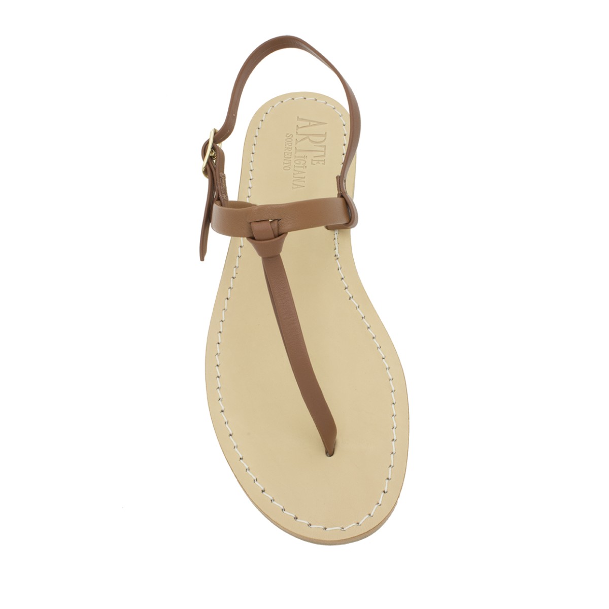 • Vitello Cuoio Naturale: Una tonalità calda e vibrante che richiama i colori della terra e degli agrumeti di Sorrento. La pelle di vitello liscia acquista nel tempo una patina unica, rendendo ogni sandalo un pezzo strettamente personale.