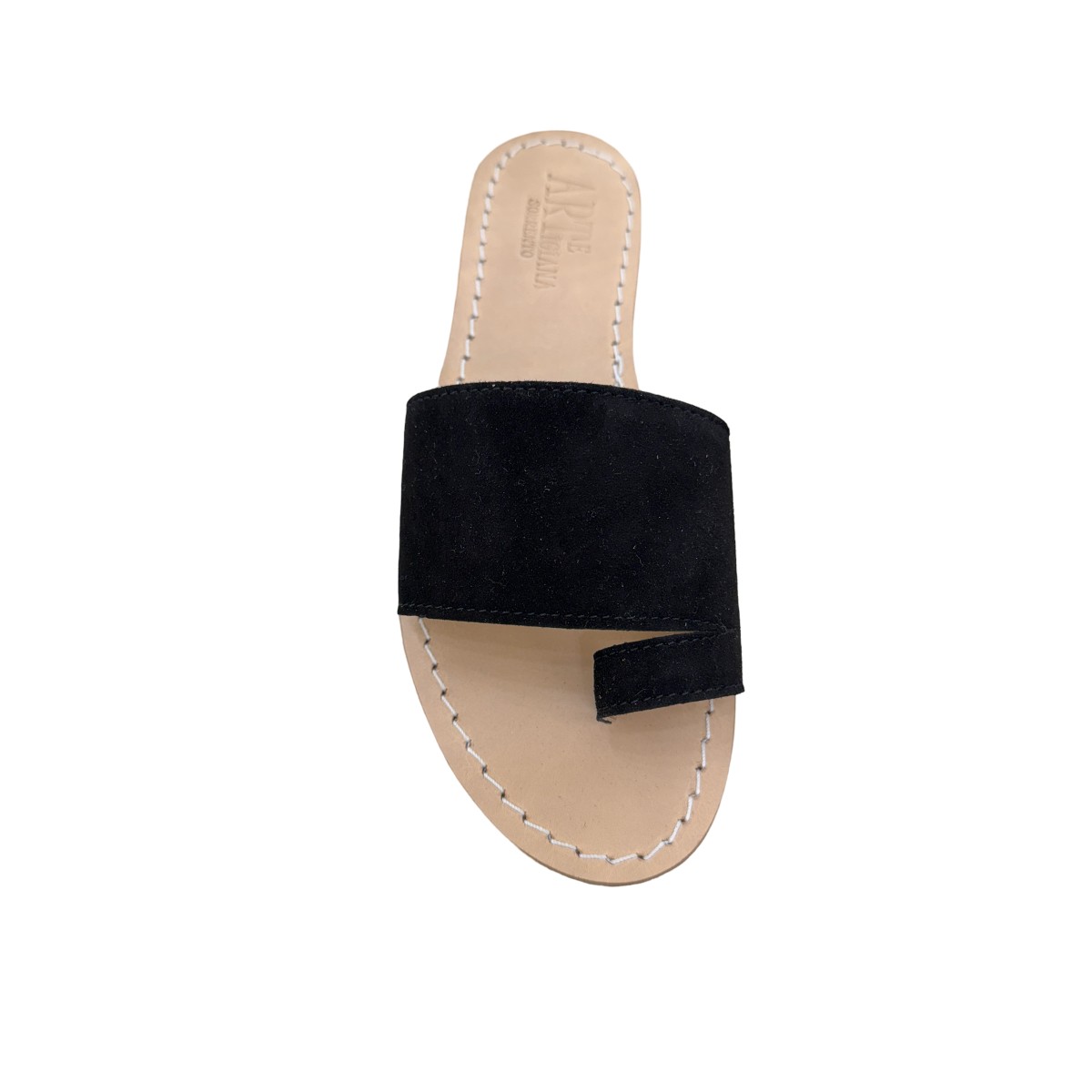 • Camoscio Nero Premium: Una pelle scamosciata vellutata di altissima qualità. La tonalità nera profonda slancia il piede, mentre la struttura tra le dita è studiata per scomparire quasi del tutto, offrendo un effetto "barefoot" estremamente raffinato.