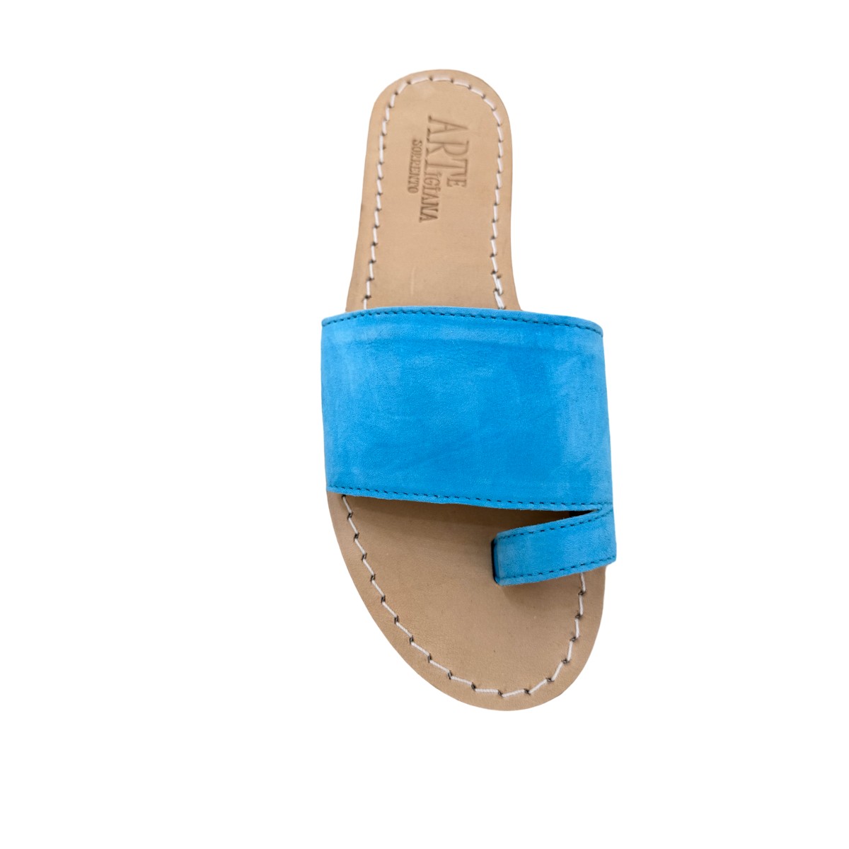 Il nostro sandalo infradito in camoscio turchese cattura l'essenza cromatica del Mar Tirreno. Ogni paio è prodotto direttamente da noi, custodi della secolare tradizione dei nostri laboratori e negozi di Sorrento. La linea pulita ed essenziale mette in risalto questa sfumatura cristallina, offrendo una sensazione di freschezza ed eleganza mediterranea.