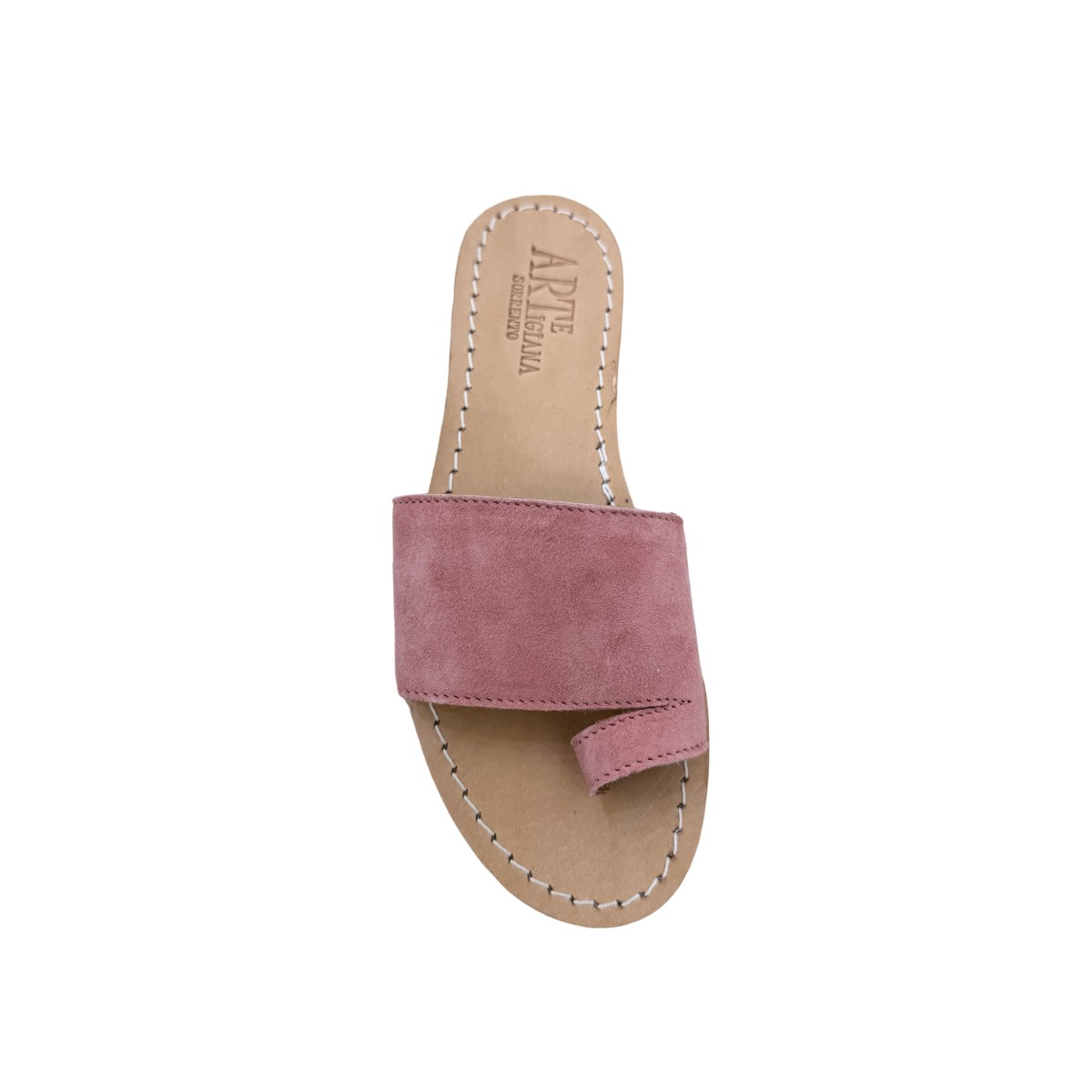 • Camoscio Rosa Antico Premium: Una pelle scamosciata vellutata e morbidissima nella raffinata tonalità "Antique Rose". La scelta ideale per chi desidera un sandalo neutro che si distingua per la sua luce calda e romantica. La struttura tra le dita è studiata per offrire una calzata impercettibile e vellutata.