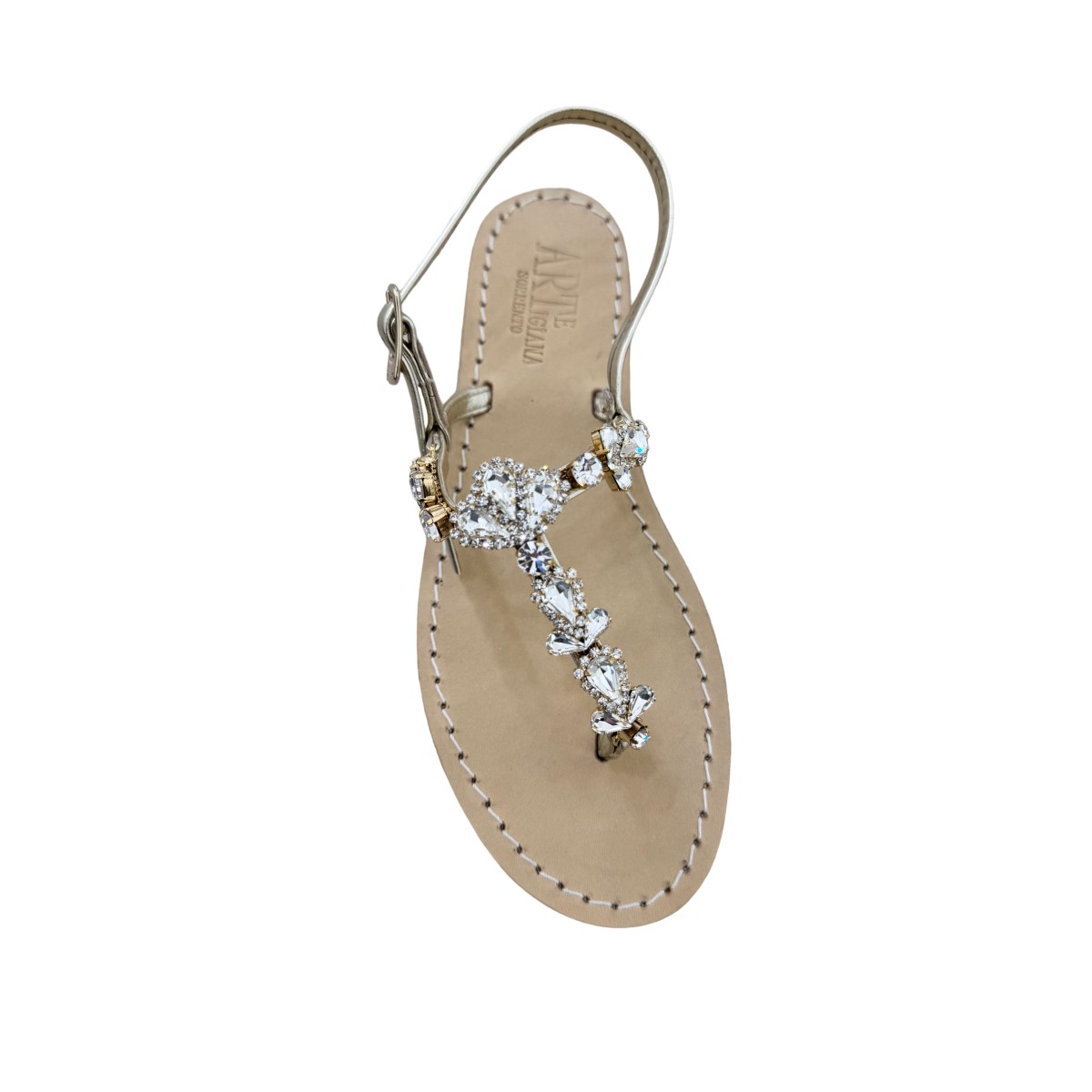La forza del sandalo Patty risiede nella sua struttura geometrica: i listini paralleli non sono solo un dettaglio estetico, ma offrono una calzata sicura e confortevole, valorizzando il collo del piede con precisione. È lo "chic assoluto": perfetto per completare un abito da sposa o da cerimonia, impeccabile con outfit dai toni pastello o per illuminare un look serale ricercato. Un accessorio che incarna l'eccellenza dell'artigianato sorrentino in una veste di pura luce.