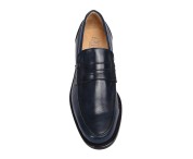 Scarpe classiche college a fascetta modello mocassino color blu, realizzate interamente a mano con pelle di vitello ingrassata. Fondo in cuoio naturale italiano.